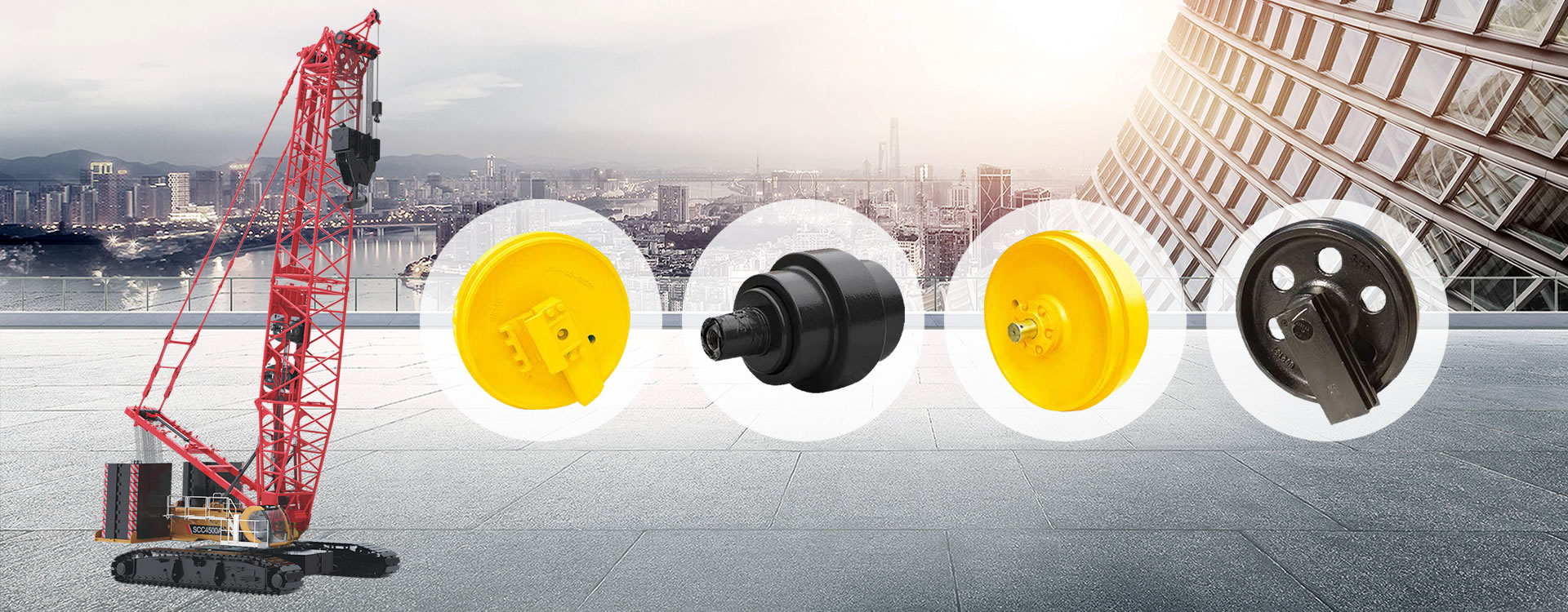 滾輪主要用于輪架下的螺旋支撐機械的質量,并將質量分布在履帶上。同時,它還依靠其滾輪法蘭夾緊鏈軌,防止履帶側向滑脫(脫軌),從而保證機器沿履帶方向'滾動阻力小'移動,以及在泥水中作業時的使用時間。 滾輪